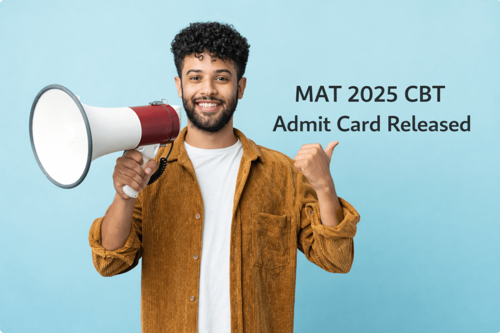 | Synopsis: The MAT 2025 admit card (Computer-Based Test) has been released today — 18 December 2025 — on the official AIMA portal. Registered candidates can log in at mat.aima.in with their credentials to download and print their hall ticket for the MAT CBT exam scheduled on 21 December 2025. The admit card is a mandatory document for entry into the test centre. |